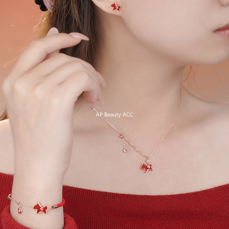 D廠-原創S925純銀 {馬上有錢}紅瑪瑙生肖馬項鍊本命年耳環手鍊「YC6404E_1 YC2201N_1 YC4678SL_1」25.10-1