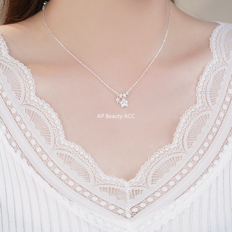 D廠-S925純銀氣質星星項鍊女百搭甜美小眾清新鎖骨鏈「YC0003N_1」25.10-1