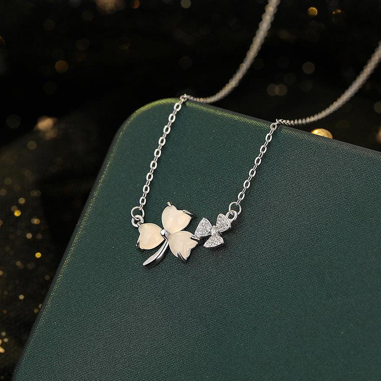 D廠-S925純銀白玉髓三葉草項鍊女輕奢高級感百搭送禮物鎖骨鏈「YC3215N」24.04-1