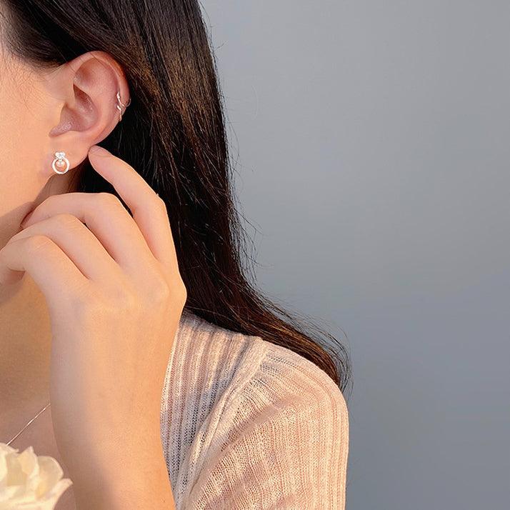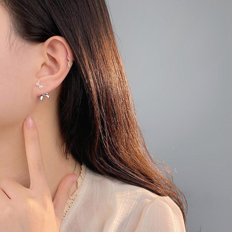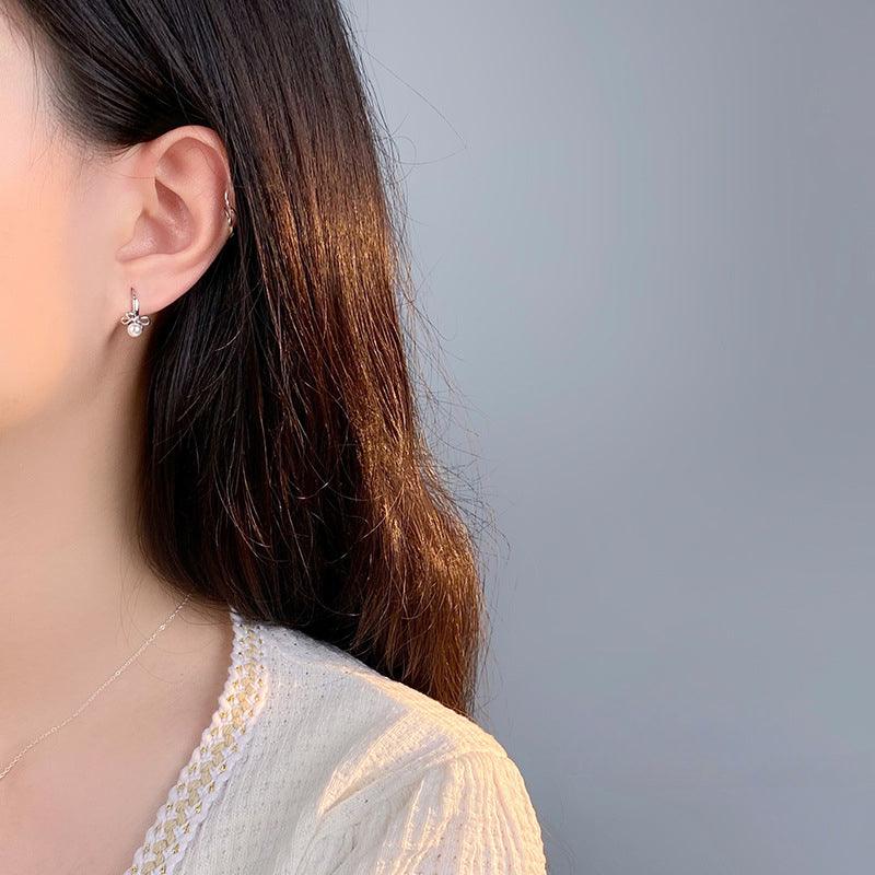 D廠-S925純銀甜美蝴蝶結珍珠耳扣女時尚百搭ins設計感耳圈「YC10218E」24.05-1