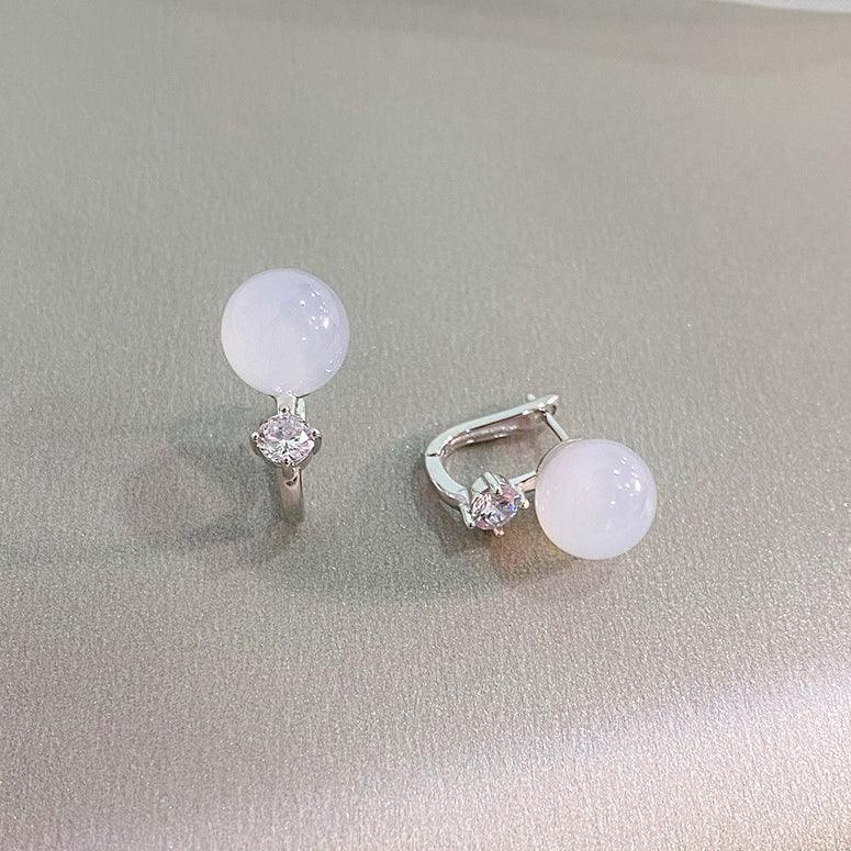D廠-S925純銀白玉髓鋯石耳環女高級感中式清冷優雅小眾設計感耳環「YC10096E」24.05-5