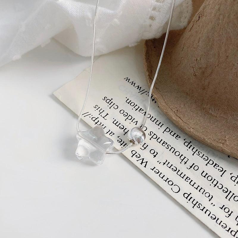 D廠-S925純銀白水晶星星項鍊清新甜美獨特設計氣質百搭鎖骨鏈批發「YC4075N」24.08-3