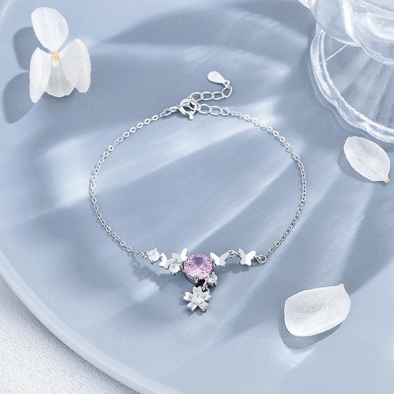 D廠-S925純銀甜美蝴蝶花朵粉鑽手鍊女清新夏季氛圍感百搭手飾「YC5123SL」24.04-2