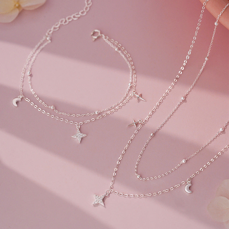 D廠-S925純銀四芒星鋯石項鍊手鍊甜美文藝簡約自然通勤手飾批發「YC0744N_1 YC4373SL_1」25.09-3