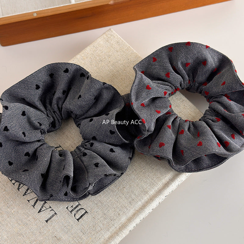 E廠-秋冬紅色波點愛心印花肥腸圈髮圈甜美時尚韓版灰色系溫柔復古髮繩「27665」25.11-2