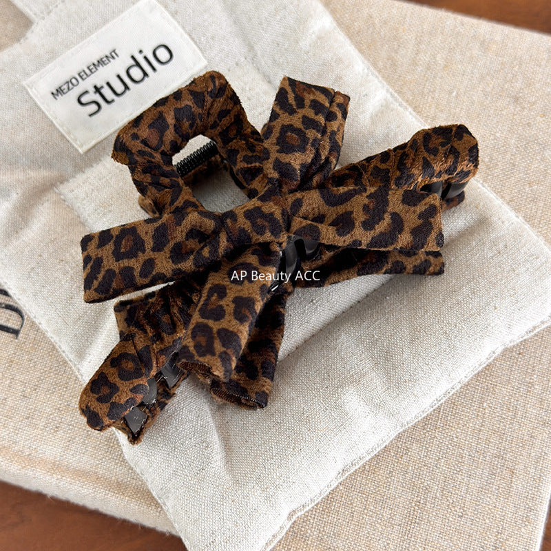 E廠-秋冬豹紋蝴蝶結抓夾女高級感大號鯊魚夾2025新款後腦勺盤髮夾髮飾「27570」25.10-3