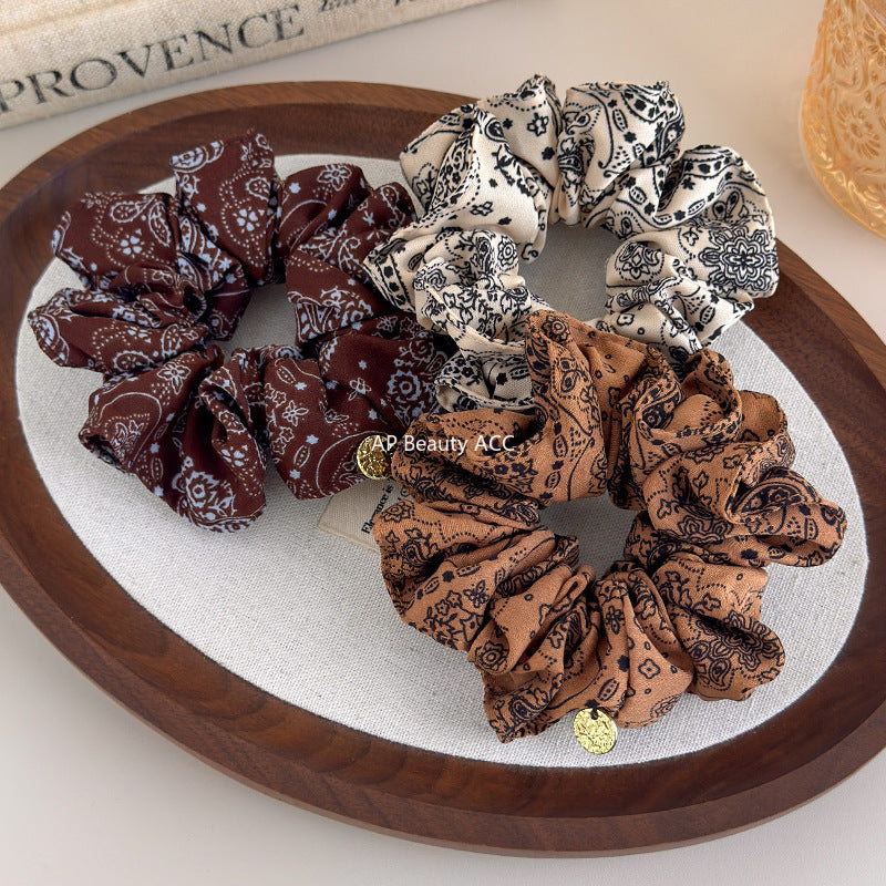 E廠-復古腰果印花大腸髮圈女2025新款高級感百搭扎頭髮皮筋馬尾頭繩「27578」25.10-3