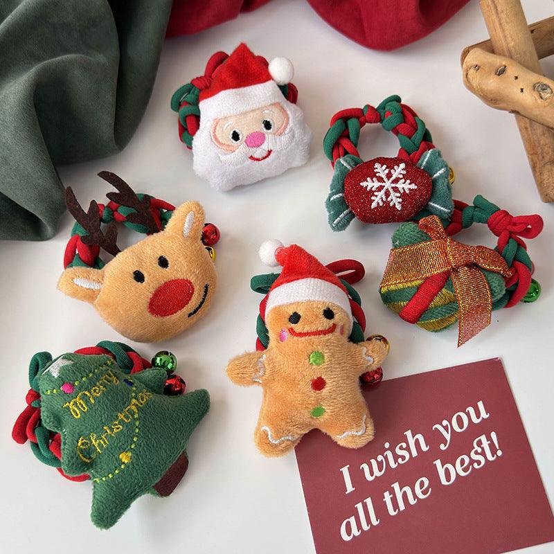 E廠-可愛聖誕老人少女編織扎頭髮圈丸子頭高彈力皮筋新年聖誕髮飾髮繩「26025」24.09-3