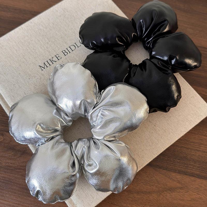 E廠-2024新款銀色高級感立體花朵髮繩頭繩高馬尾低丸子頭大腸髮圈髮飾「25710」24.07-3