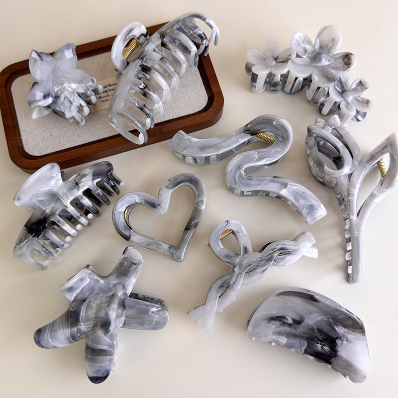 E廠-灰色系暈染水墨風抓夾女氣質高級感大號後腦勺鯊魚夾半扎髮夾髮飾「27267」25.07-4