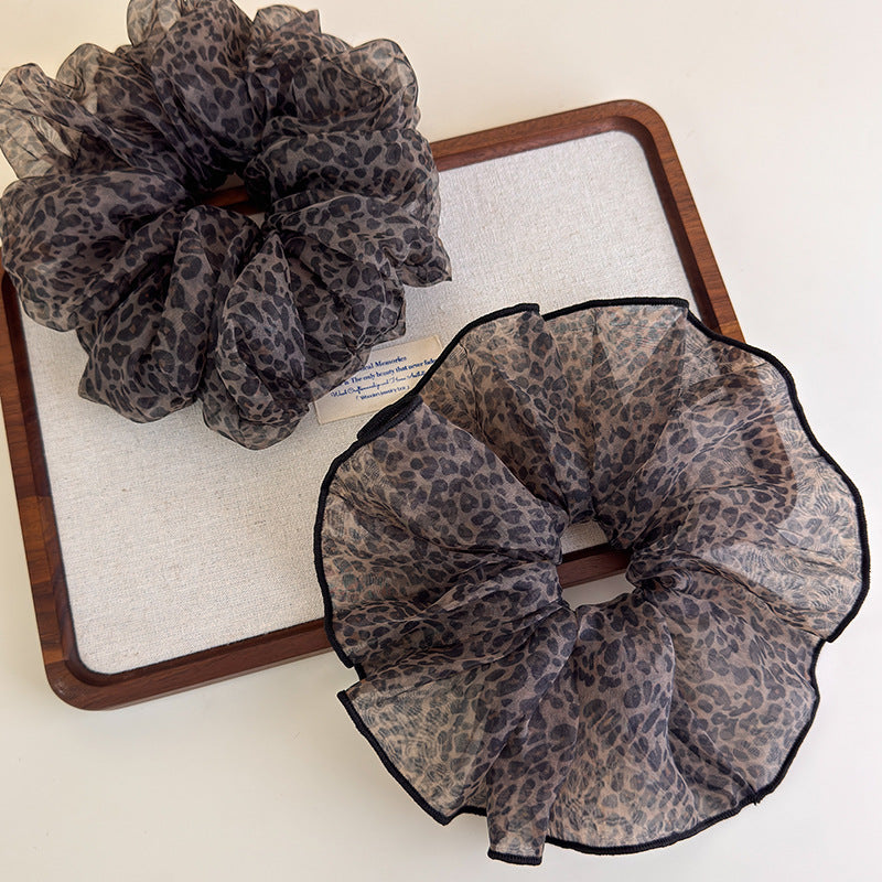 E廠-韓系蓬松慵懶風豹紋網紗大腸髮圈女高級感馬尾辮頭繩髮飾頭花頭飾「27333」25.08-3