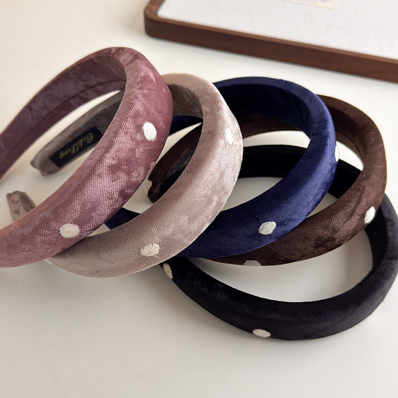 E廠-秋冬復古氣質刺繡波點髮箍女2025新款高顱頂頭箍日常外戴洋氣髮卡「27423」25.09-1