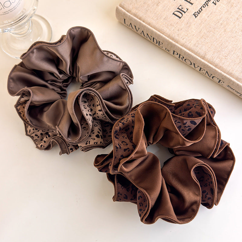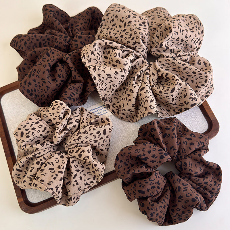 E廠-復古豹紋咖色大腸髮圈女高級感氣質丸子頭扎頭髮超大頭繩頭花髮繩「27447」25.09-2