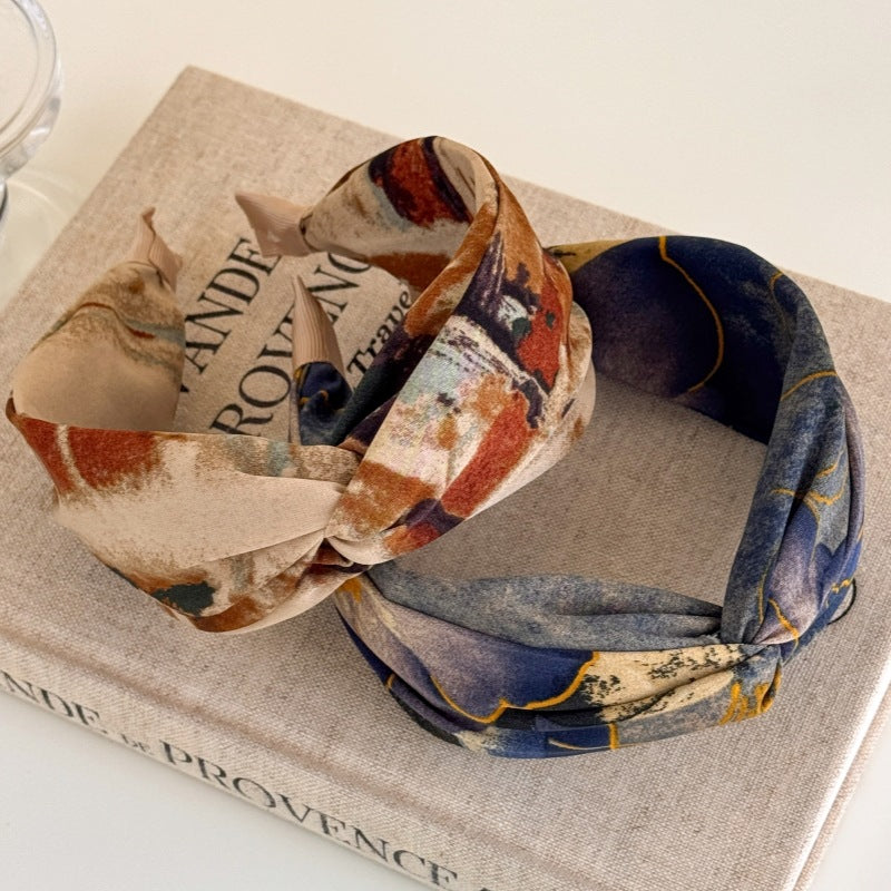 E廠-韓國復古扎染布藝頭箍寬邊交叉高顱頂髮卡氣質簡約女士外戴髮箍女「27494」25.09-4
