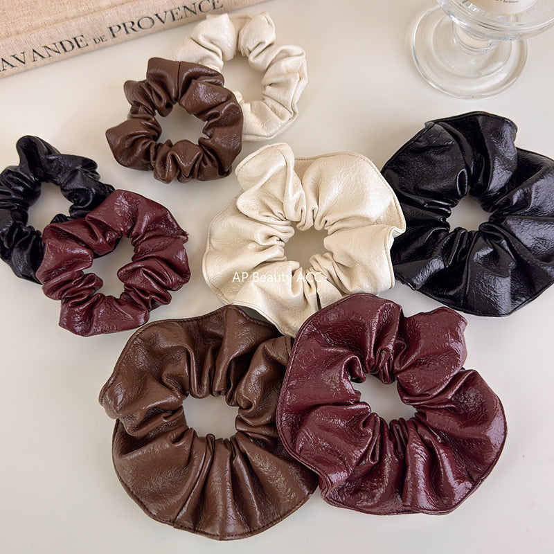 E廠-法式復古pu皮質大腸髮圈女高彈力丸子頭扎馬尾髮繩不傷髮頭繩髮飾「27539」25.10-1