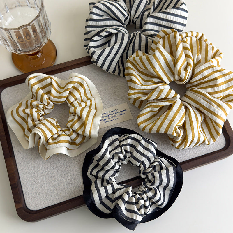 E廠-2025韓系新款簡約學院風條紋布藝大腸髮圈時髦條紋低馬尾髮繩髮飾「27113」25.06-4