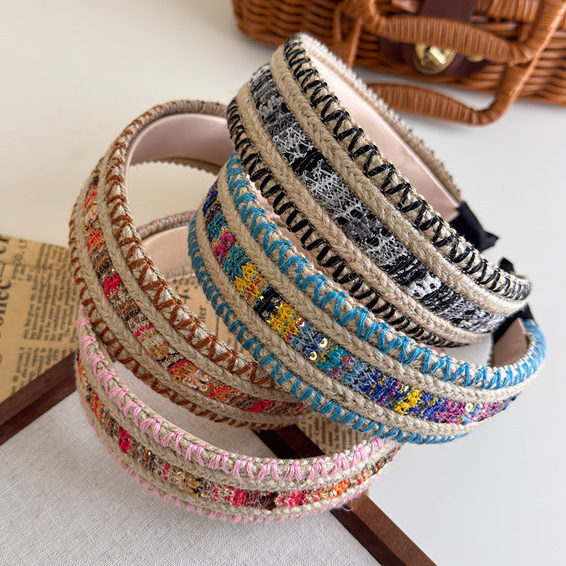 E廠-宋仁何同款民族風編織髮箍女高顱頂波西米亞海邊頭箍髮飾2025新款「27211」25.07-3