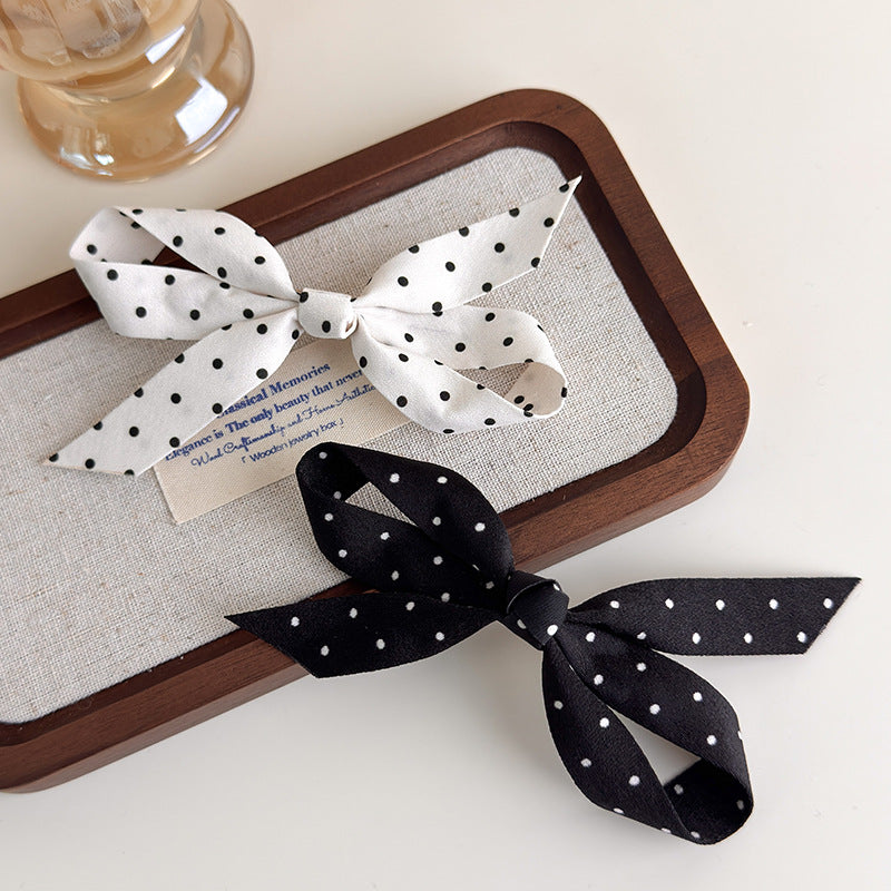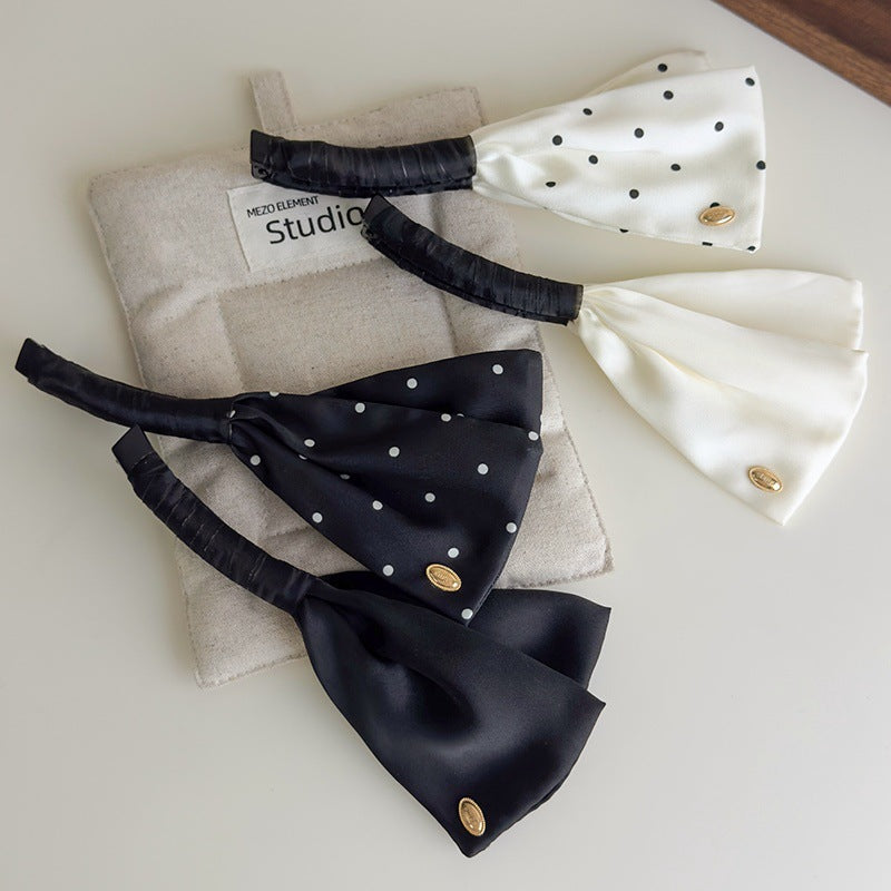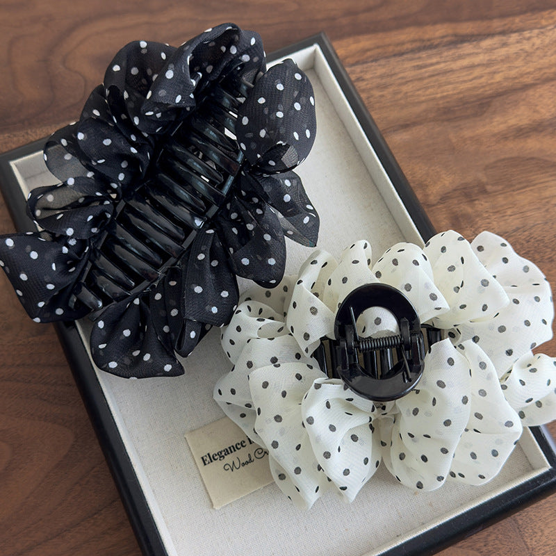 E廠-韓版高級感緞面波點翅膀香蕉夾女後腦勺扎高馬尾扭夾可調節髮夾新「27090」25.06-3