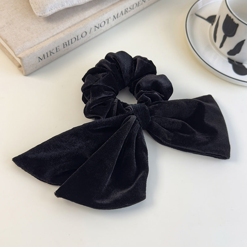 E廠-簡約氣質絲絨黑色蝴蝶結髮圈女2025新款高級感頭花頭繩扎頭髮皮筋「26853」25.04-4