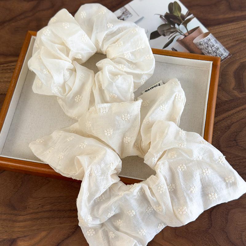 E廠-韓系溫柔奶白色方巾髮繩頭繩大腸髮圈女2025年新款甜美皮筋髮圈潮「26507」25.02-2