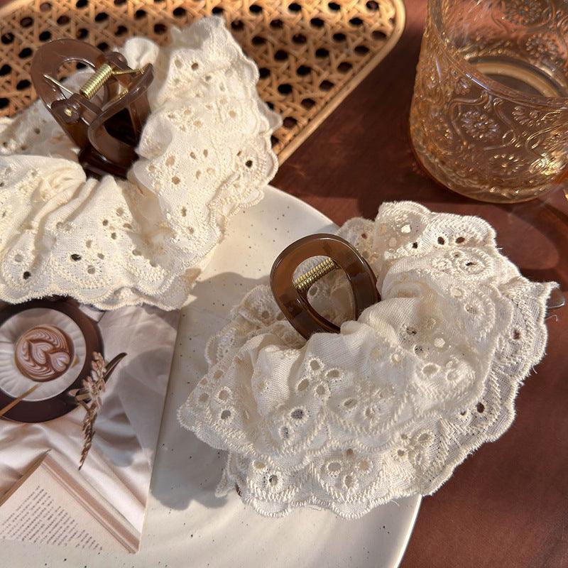 E廠-法式復古蕾絲頭花抓夾女2025新款後腦勺髮夾高級感大號鯊魚夾頭飾「24976」25.04-1