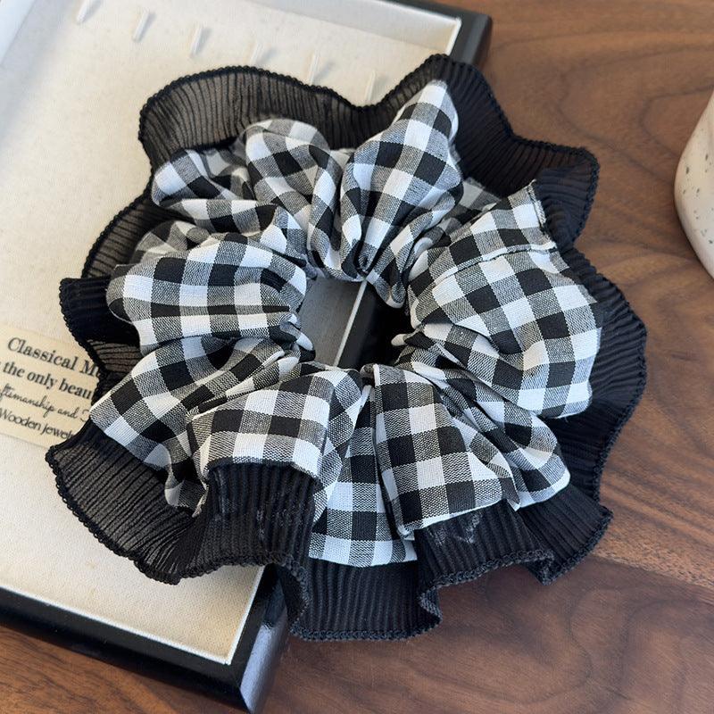 E廠-文藝氣質黑白格紋花邊大腸髮圈丸子頭髮繩ins少女頭繩撞色髮圈女「26455」25.02-2