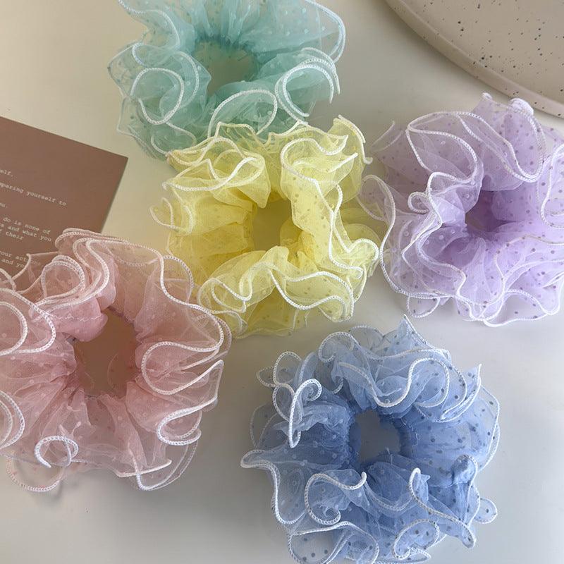 E廠-薄荷汽水 清新網紗波點褶皺大腸髮圈超仙丸子頭扎髮頭繩皮筋髮飾「26727」25.03-4