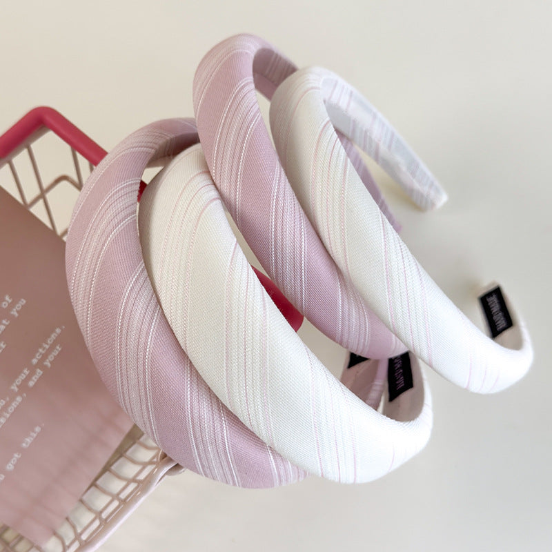 E廠-淺粉新款高級感簡約氣質條紋布藝海綿髮箍復古時尚外出壓髮頭箍女「26881」25.05-1