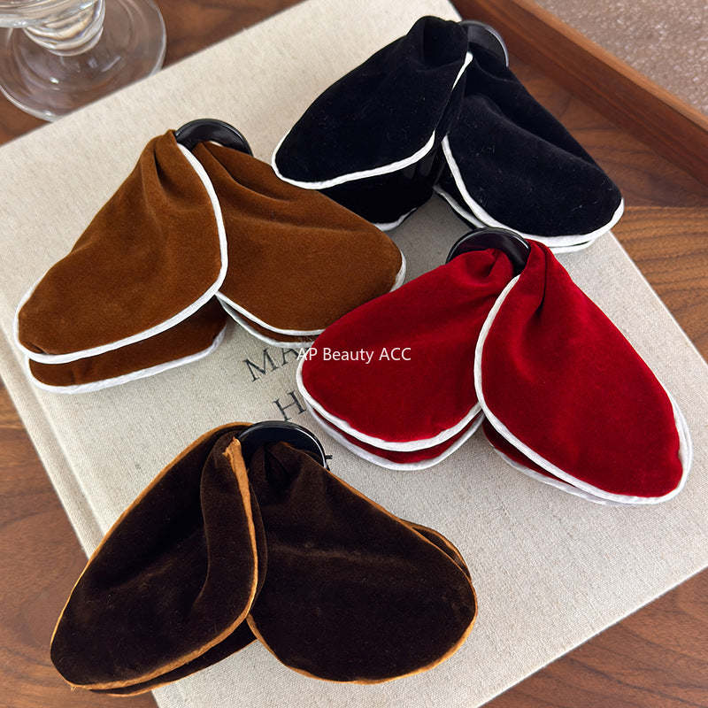 E廠-赫本風~秋冬植絨蝴蝶三角抓夾2025後腦勺高端鯊魚髮夾髮卡頭飾女「27586」25.10-4