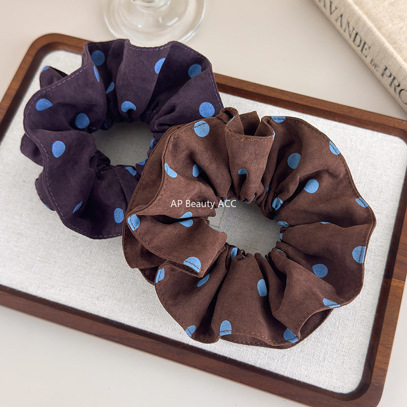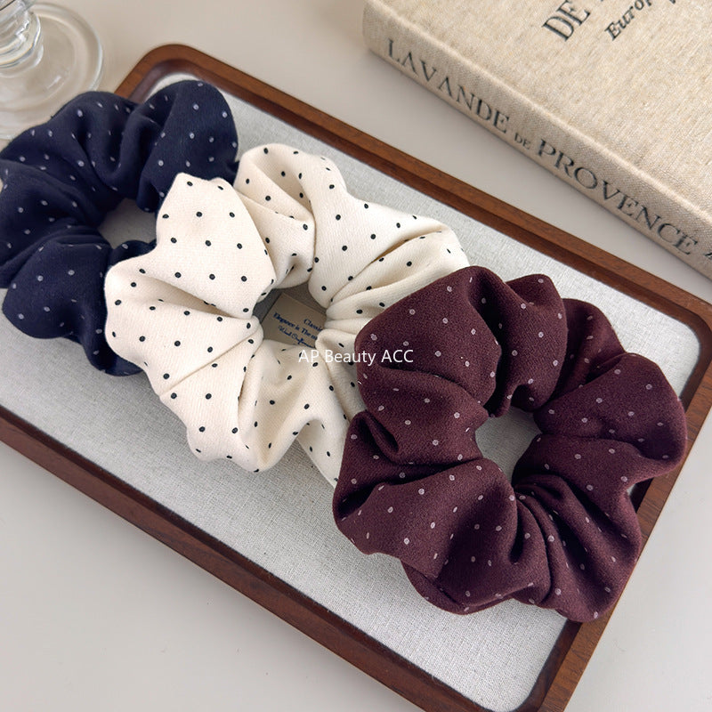 E廠-法式軟糯波點布藝大腸髮圈女高級感丸子頭髮繩頭飾盤髮頭繩髮飾「27581」25.10-3