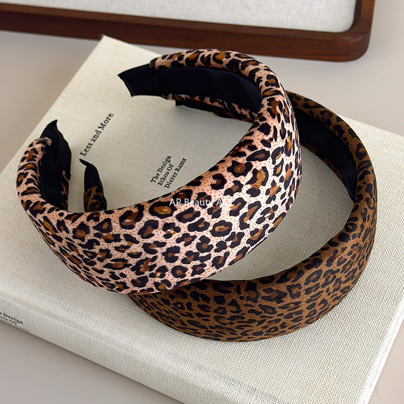E廠-韓版ins絨面氣質豹紋寬邊髮箍海綿高顱頂設計感頭箍壓髮卡頭飾女「27582」25.10-3