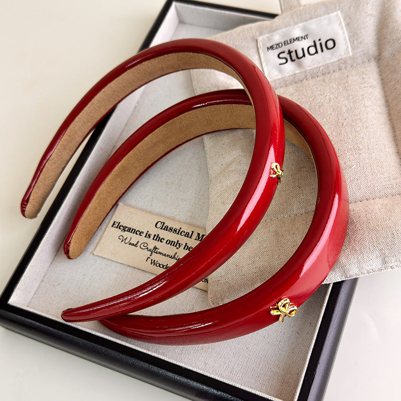 E廠-顯白王者復古紅色pu皮質蝴蝶結海綿髮箍女寬邊高顱頂壓髮洗臉頭箍「25879」25.09-2
