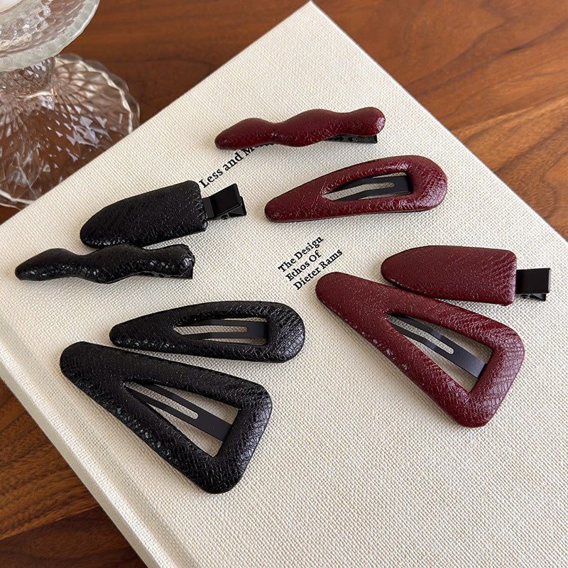 E廠-韓系復古紅色皮質幾何bb夾髮夾鴨嘴夾時尚瀏海夾側邊夾子碎髮卡女「27459」25.09-2