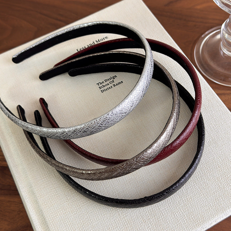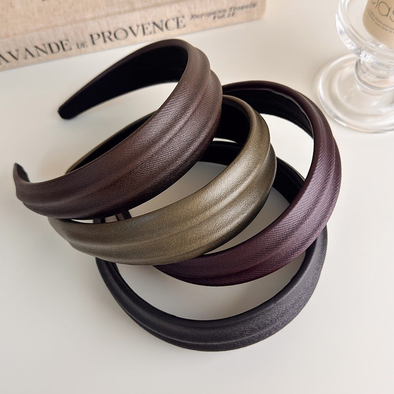 E廠-早秋新款摩卡色仿皮質凹凸髮箍高級感高顱頂頭箍百搭寬邊洗臉髮卡「27484」25.09-3