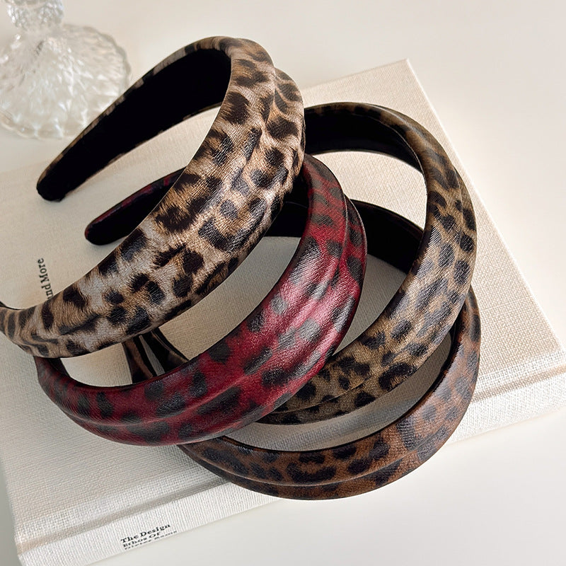 E廠-港風復古仿皮質豹紋髮箍女高顱頂壓髮頭箍2025新款高級感百搭髮飾「27485」25.09-3