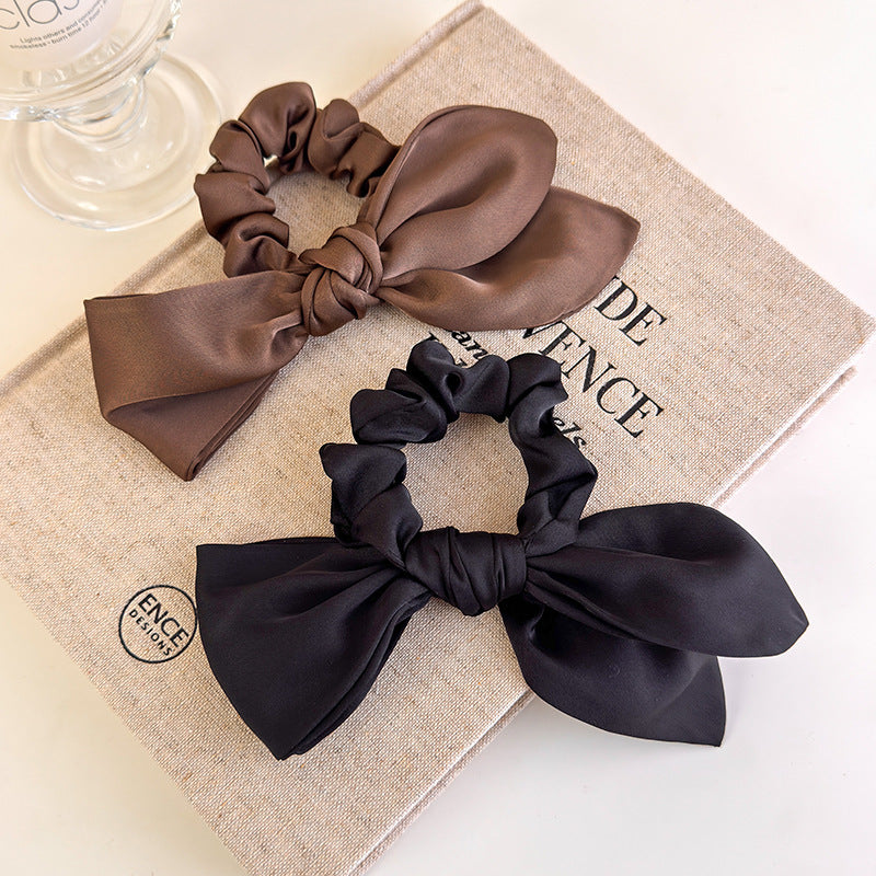 E廠-法式慵懶感~chic高級感緞面不對稱蝴蝶結髮圈小腸圈扎頭髮髮圈女「27448」25.09-2
