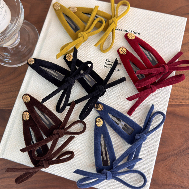 E廠-字母金標復古絲絨蝴蝶結BB夾百搭少女質感髮夾扎頭髮繩瀏海夾髮飾「27476」25.09-3