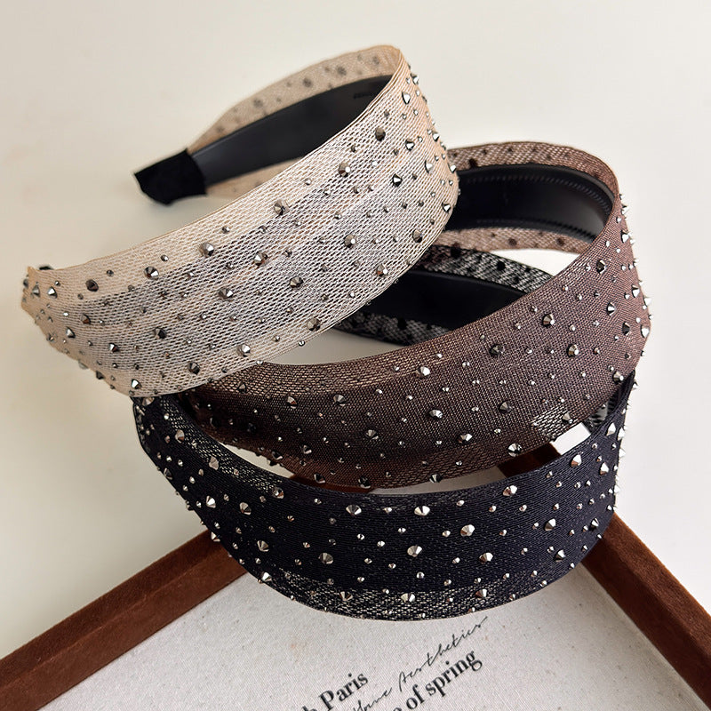 E廠-復古閃耀閃鑽黑色髮箍水鑽高顱頂壓髮寬邊頭箍日常氣質百搭頭飾品「27234」25.07-3