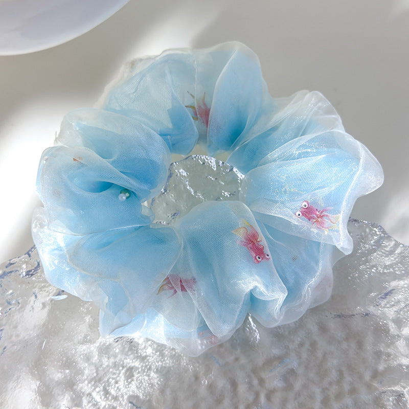 E廠-小金魚泡泡歐根紗髮圈甜美大腸圈夢幻網紗雙層髮繩頭繩超仙髮飾品「27189」25.07-1