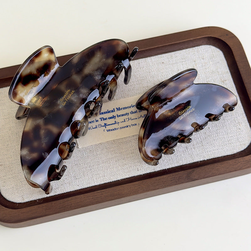 E廠-韓國ins老錢風焦糖細閃豹紋醋酸抓夾法式復古高級感鯊魚夾子頭飾「27179」25.07-1