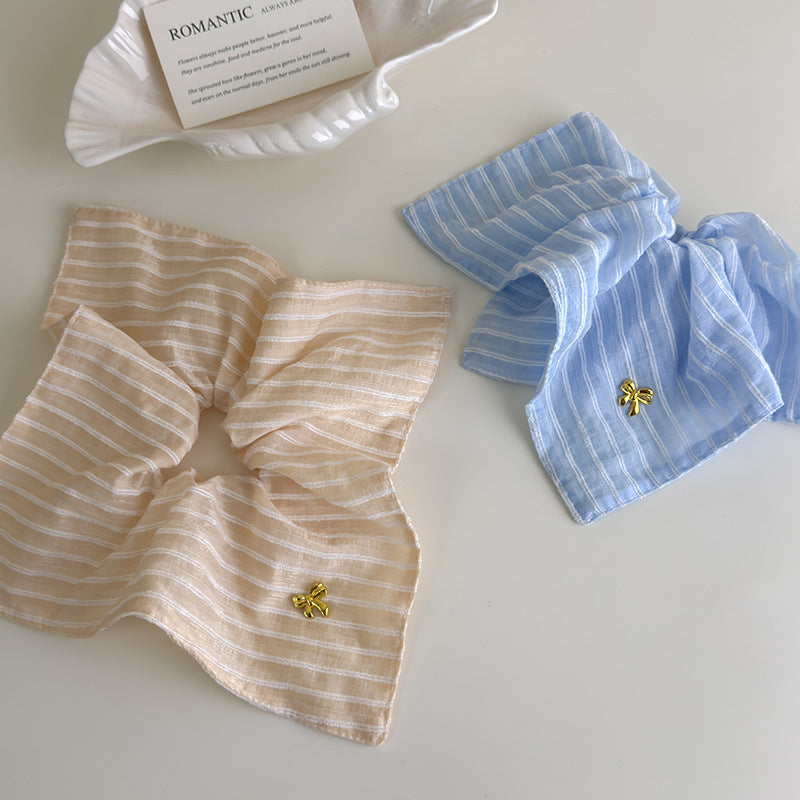E廠-韓系清新藍色條紋方巾大腸髮圈女方形扎頭髮皮筋側低馬尾髮繩頭繩「27125」25.06-4