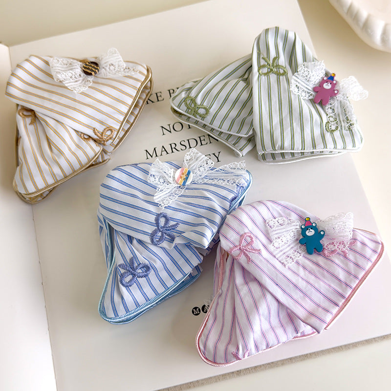 E廠-韓系甜美條紋小熊蝴蝶結三角抓夾大號髮量大2025新款後腦勺鯊魚夾「27170」25.07-1