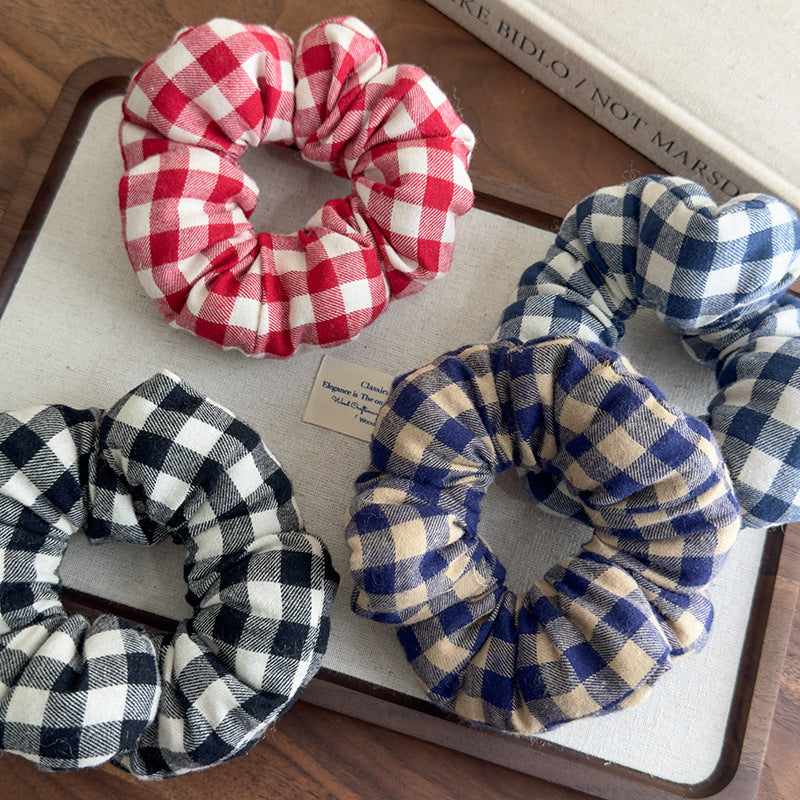 E廠-趙露思同款慵懶黑白格子充棉大腸髮圈頭繩髮飾頭花扎馬尾皮筋髮繩「27154」25.07-1