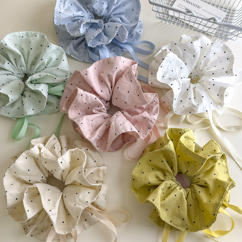 E廠-法式溫柔抽繩髮圈彩色波點布藝超大頭花丸子頭扎馬尾髮繩大腸圈「27187」25.07-1