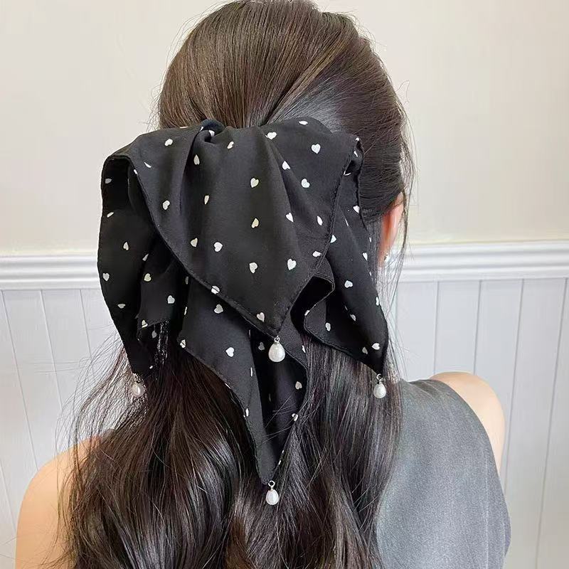 E廠-愛心波點吊珠抓夾女大號方巾馬尾夾優雅氣質後腦勺髮夾子半扎髮飾「27100」25.06-3