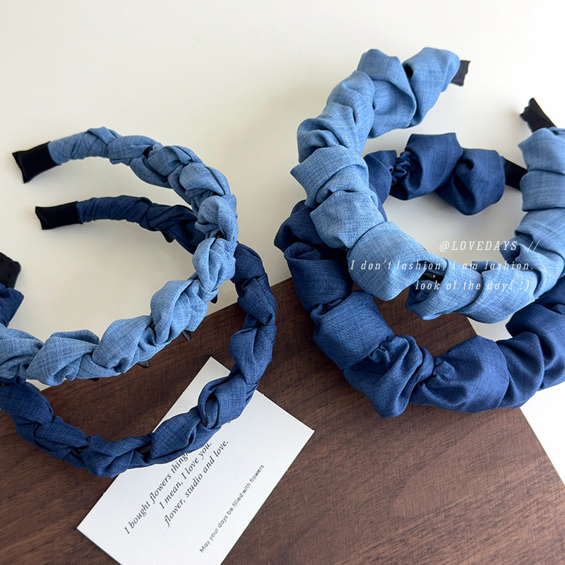 E廠-正反兩戴牛仔藍波浪帶齒高顱頂髮箍壓髮洗臉頭箍防滑碎髮整理神器「27107」25.06-4