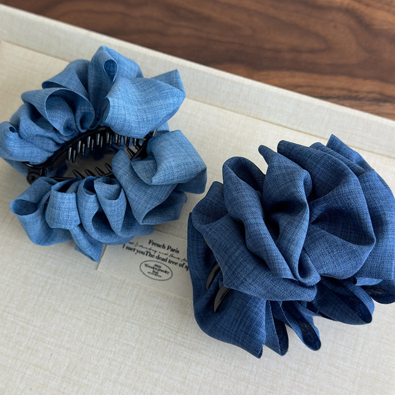 E廠-顯髮量神器!甜酷牛仔布藝褶皺泡泡蓬松丸子夾丸子頭神器馬尾夾女「27098」25.06-3