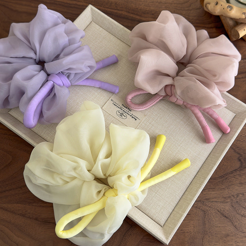 E廠-韓國少女雪紡蓬松大腸髮圈2025新款高級甜美蝴蝶結頭繩扎馬尾髮飾「27102」25.06-3