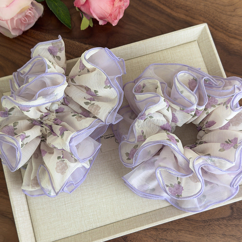 E廠-紫色碎花甜美網紗髮圈輕薄仙氣俏皮碎花大腸圈馬尾髮繩頭花髮飾「27103」25.06-3