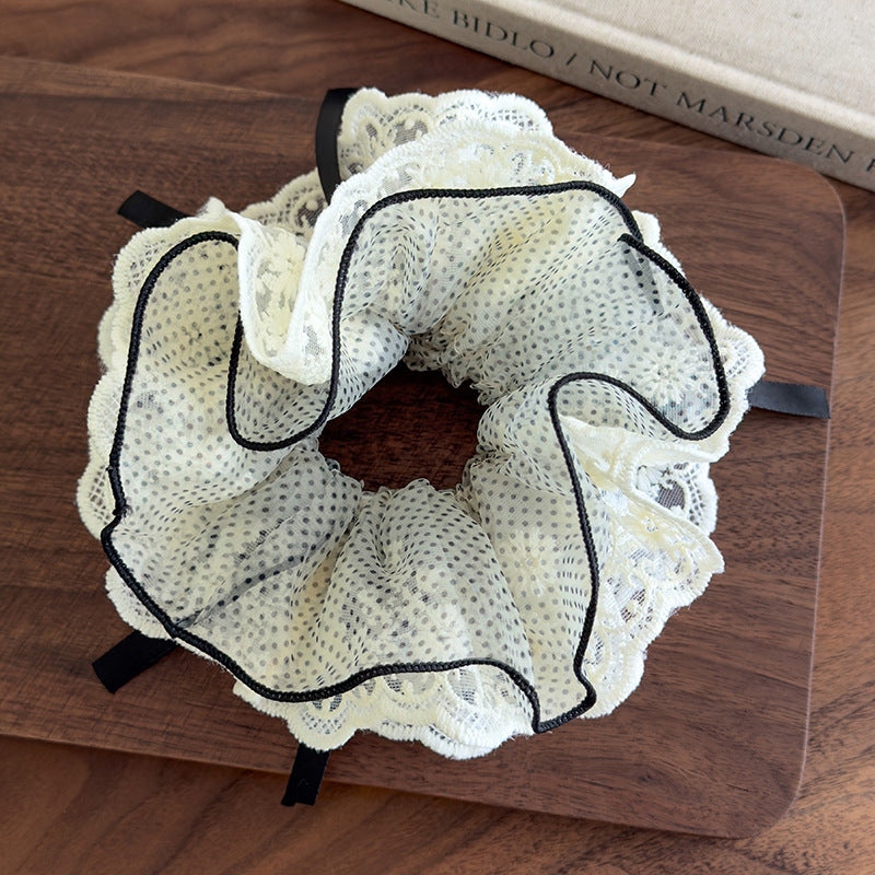 E廠-波點網紗四層蕾絲大腸髮圈公主風絲帶蝴蝶結頭花女高顏值甜美髮繩「27101」25.06-3